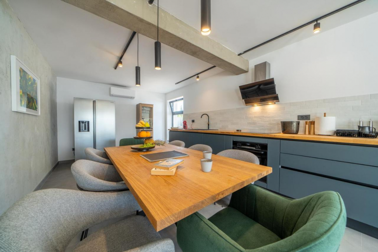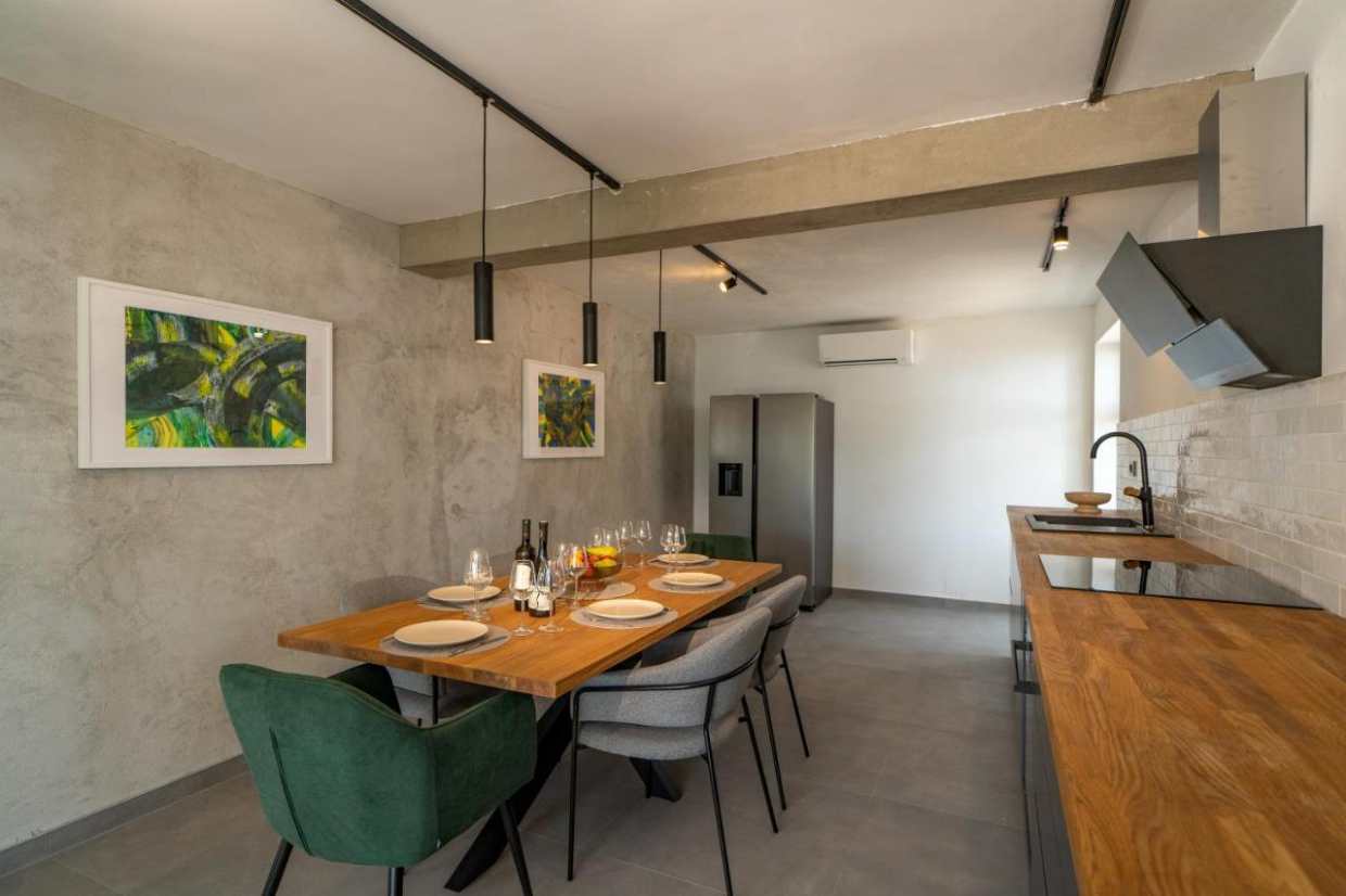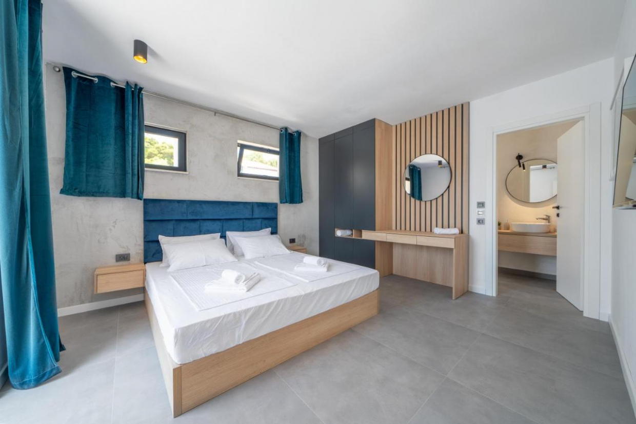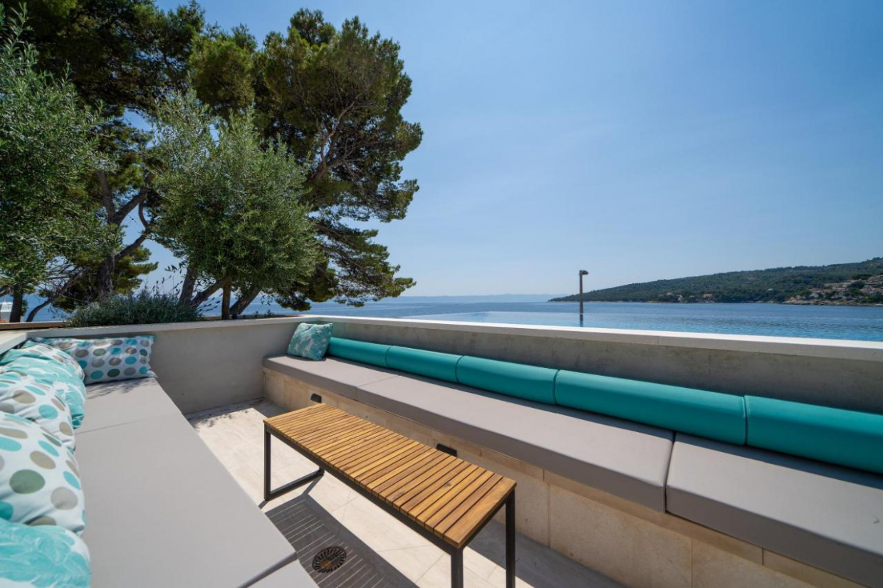 Ontspan in de ruime buitenruimte, die is gelegen op een perceel van 1100 m2. De weelderige tuin en het terras bieden de ideale omgeving om buiten te dineren of te genieten van een glas wijn terwijl je de zon ziet ondergaan boven het kristalheldere water van de Adriatische Zee.