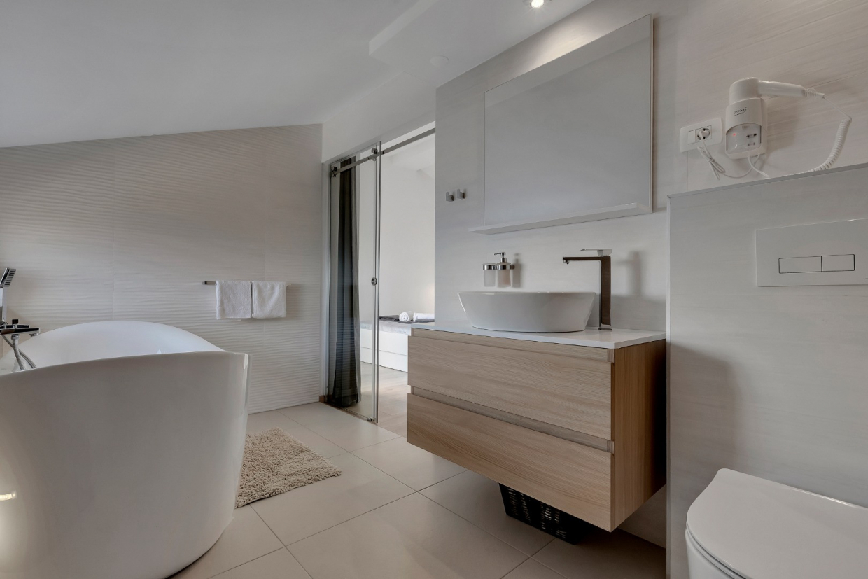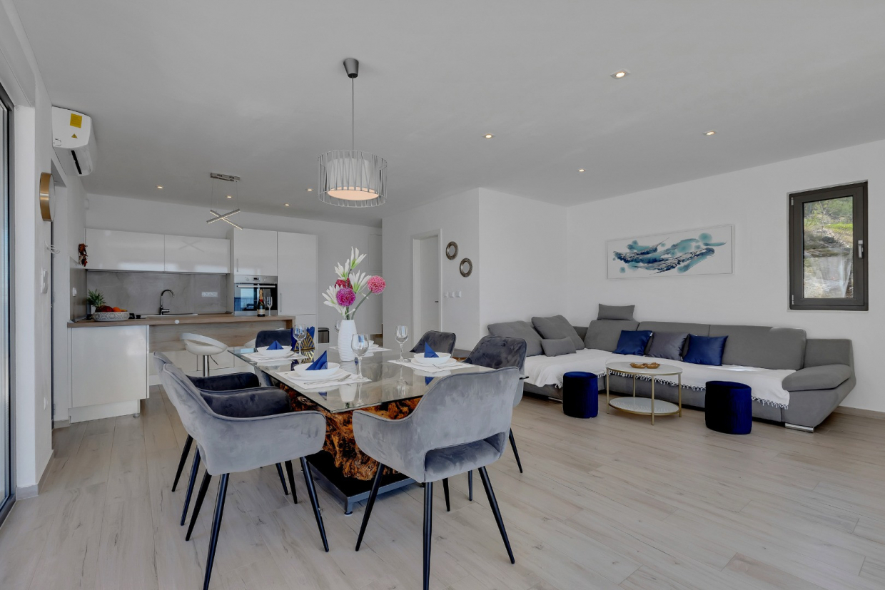 Uitzicht op zee en de bergen: onderste verdieping van een gezinswoning op een rustige locatie