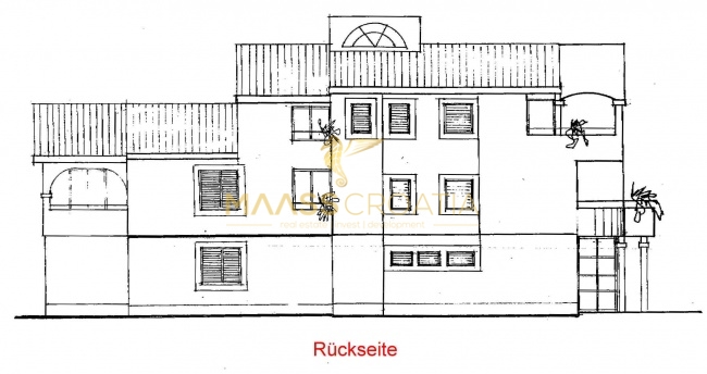 Het gebouw bestaat uit in totaal 14 wooneenheden – 12 appartementen en 2 slaapkamers en een horecagedeelte – receptie en restaurant, evenals gesloten en open terrassen. De exacte verdeling vind je hieronder in de tekst