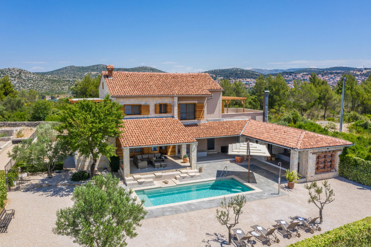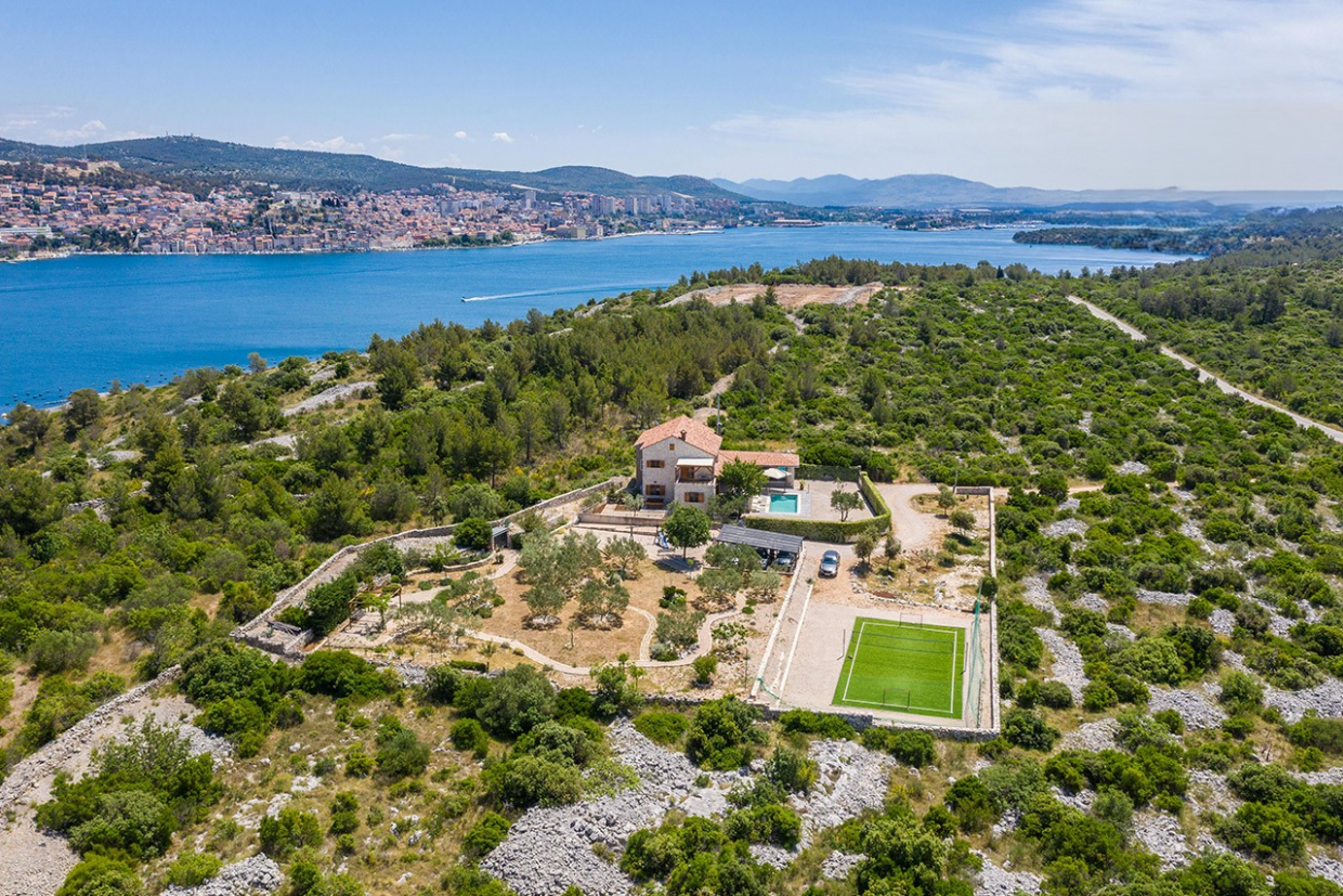 De villa biedt een spectaculair panoramisch uitzicht op de zee en Primošten. Het is momenteel in aanbouw en ligt...