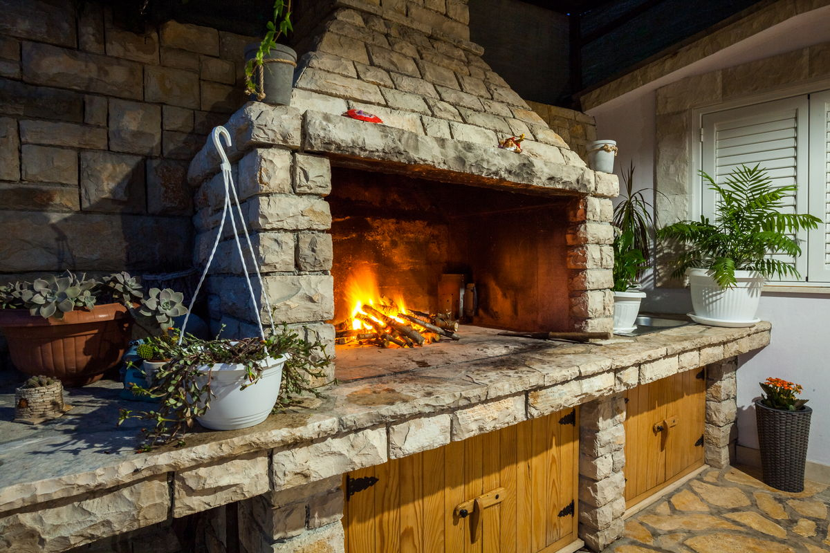 Op het terras op de begane grond, direct naast het zwembad, staat een stenen barbecue voor gezellige bijeenkomsten.
