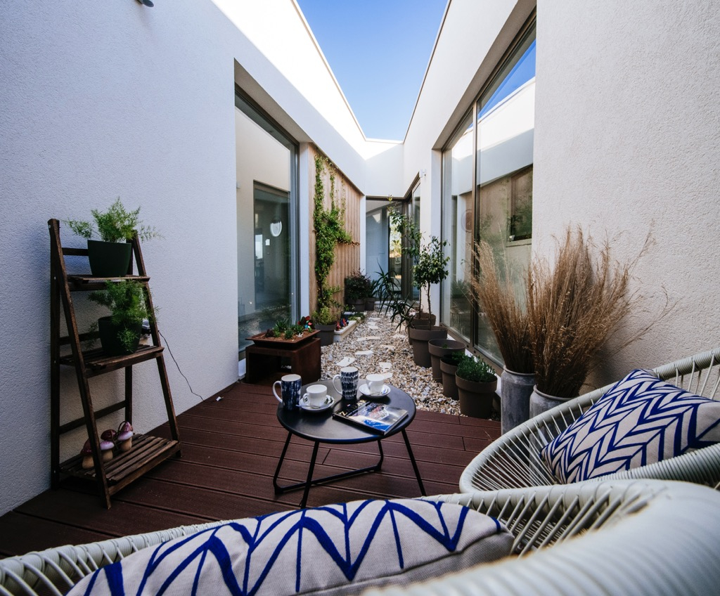 De elegante en eenvoudige architectuur maakt dit huis tot een echte blikvanger.