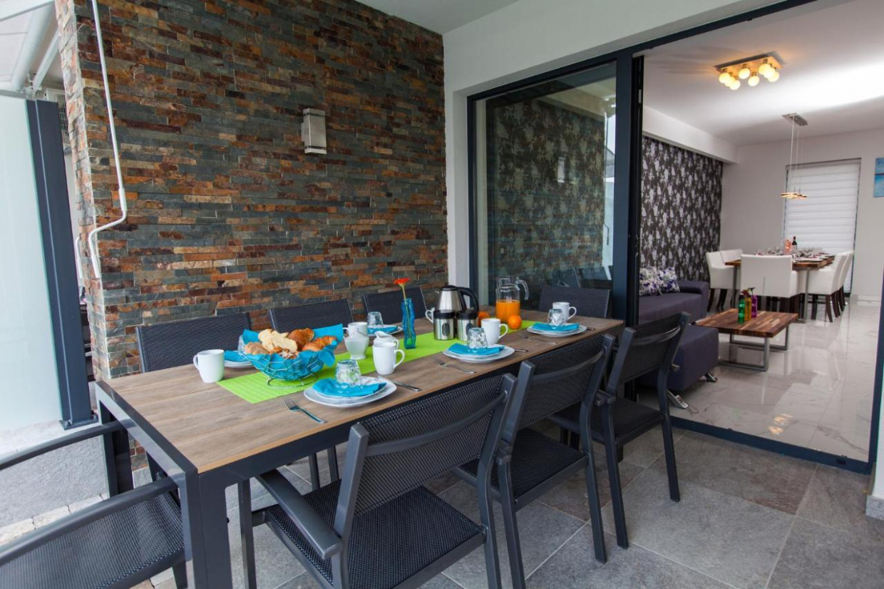 Het grote zwembad is perfect geplaatst op het terras en wordt bekroond door enkele tropische palmbomen die je het gevoel geven dat je je eigen tropische fantasie beleeft in het hart van de Kvarner regio!
