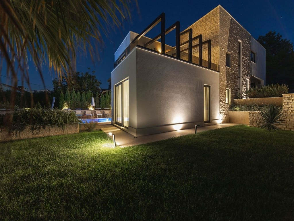 Nieuwe, moderne villa met zwembad Dit nieuwe gelijkvloerse huis met zwembad ligt in Pula, de grootste stad in het...