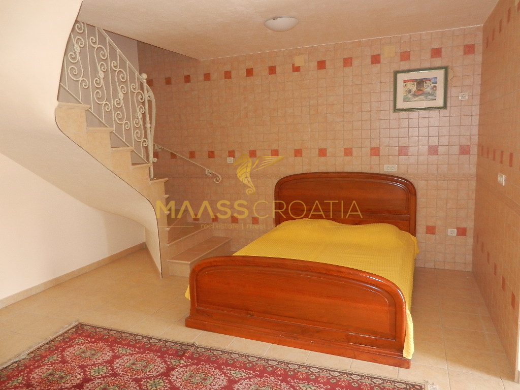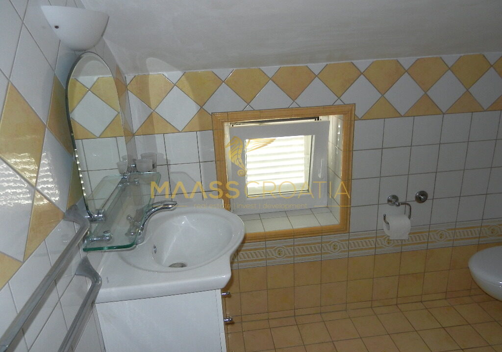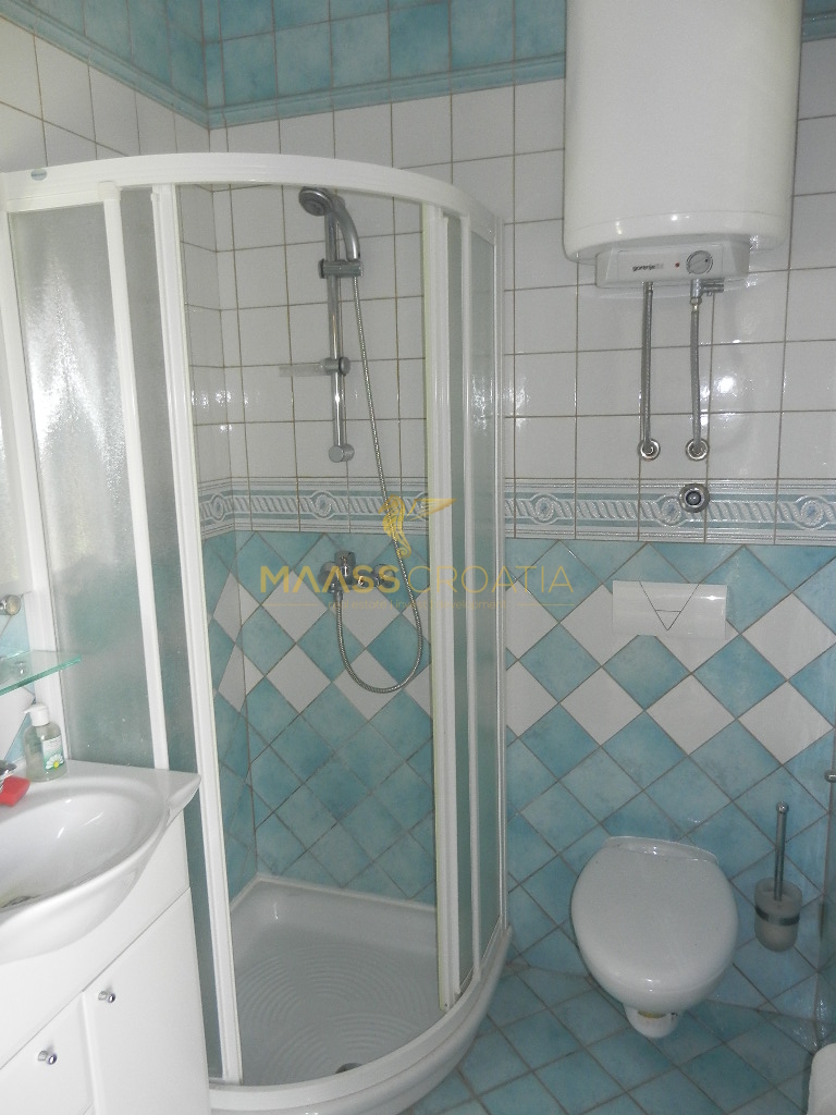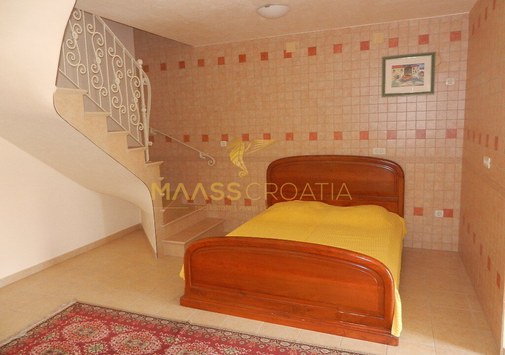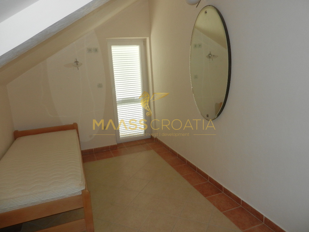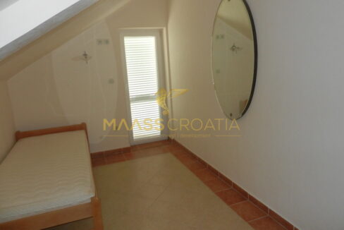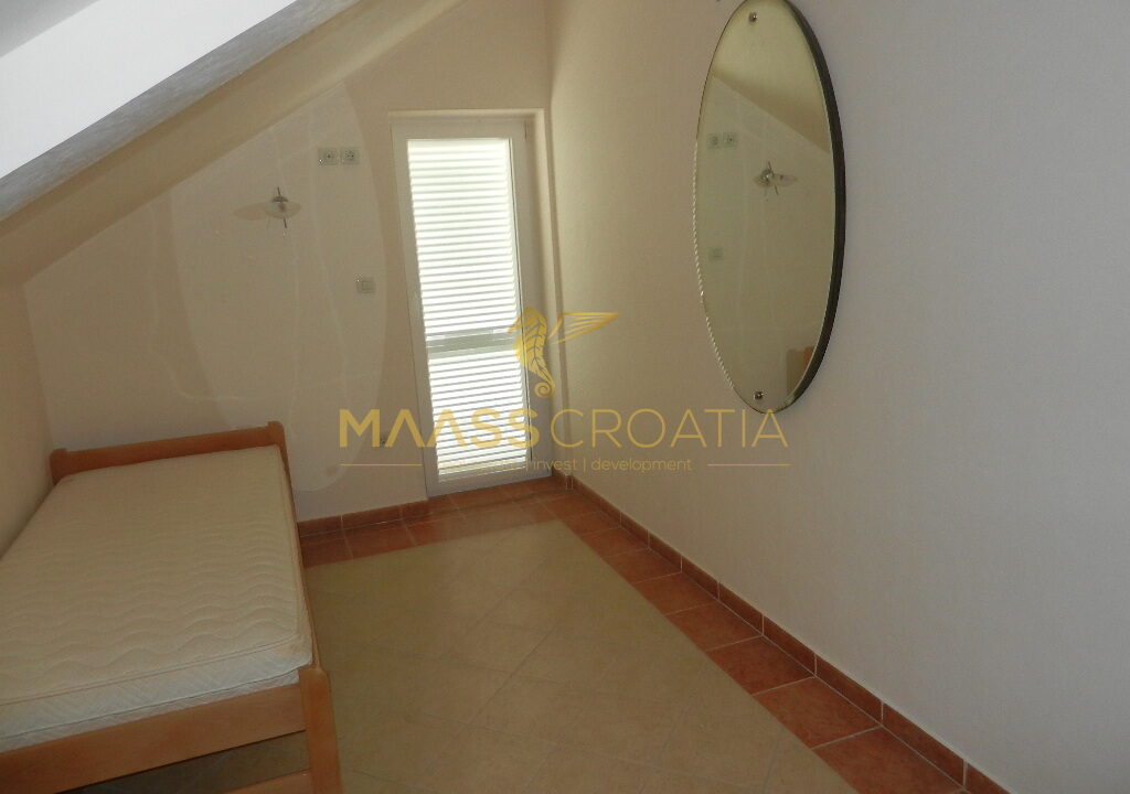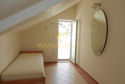 De bovenste verdieping en zolder is een duplex appartement van 66m2, met twee slaapkamers, keuken en woonkamer, twee badkamers, balkon 3m2, terras 10m2 met panoramisch uitzicht op zee.