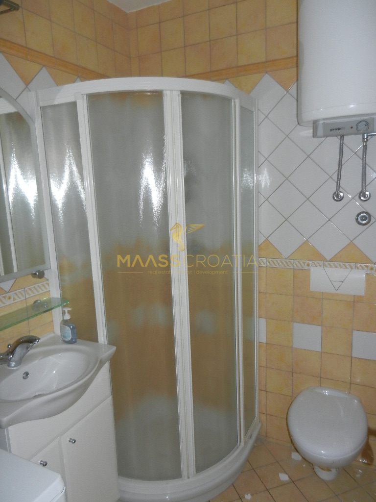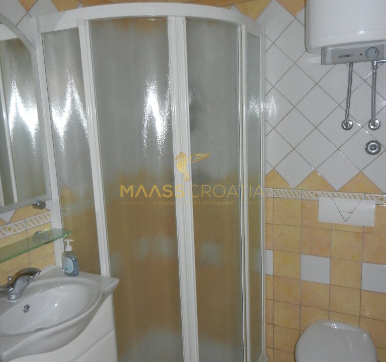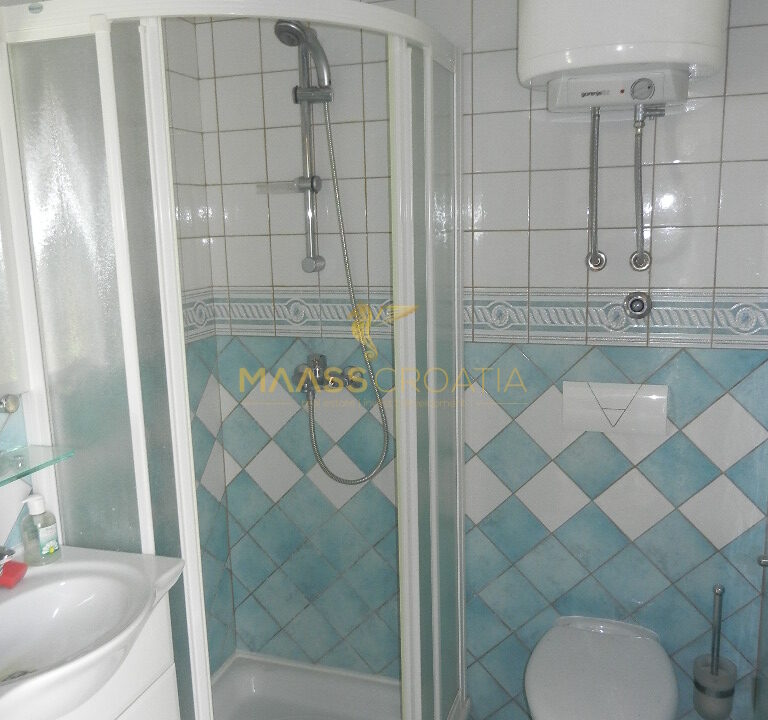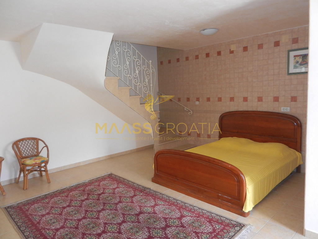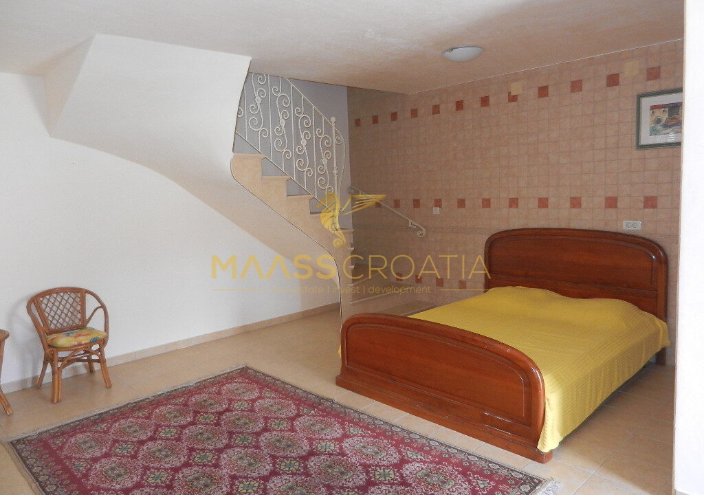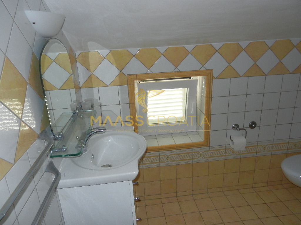 De bovenste verdieping en zolder is een duplex appartement van 66m2, met twee slaapkamers, keuken en woonkamer, twee badkamers, balkon 3m2, terras 10m2 met panoramisch uitzicht op zee.