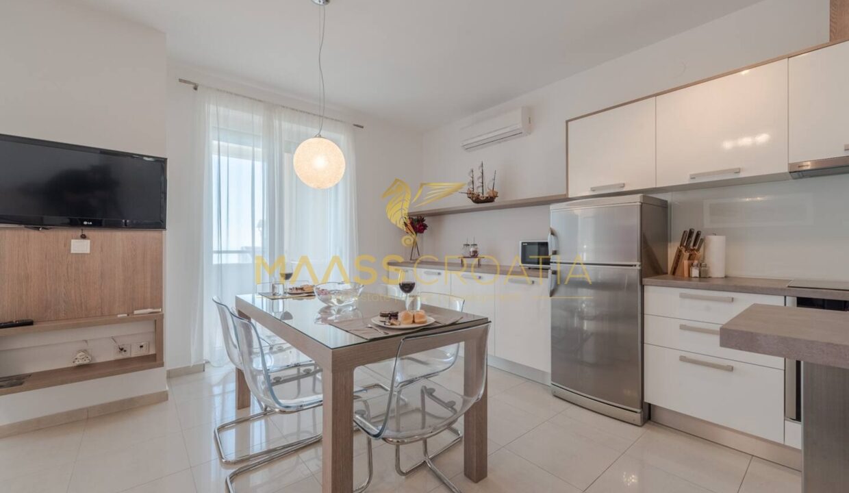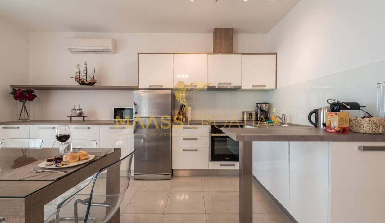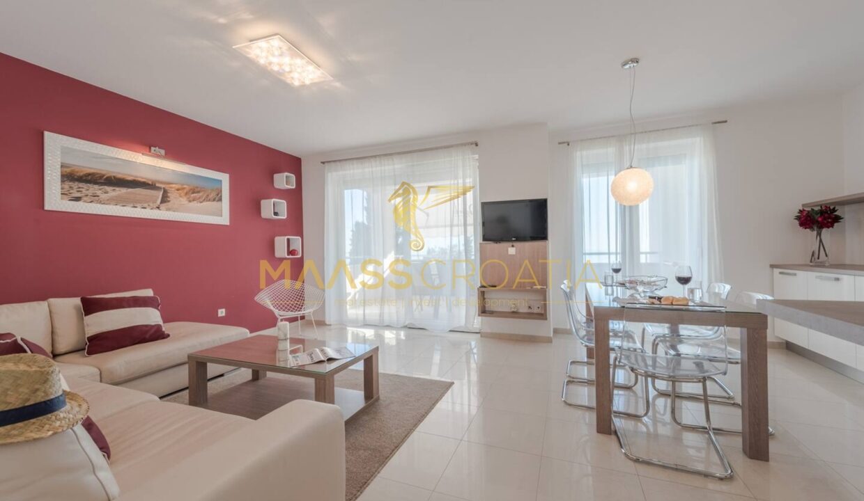 Te koop is een appartement op de eerste verdieping van een luxe villa direct aan de kust in Novalja op het eiland Pag....